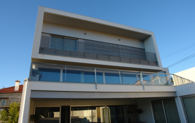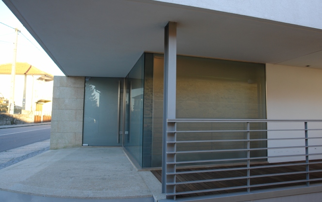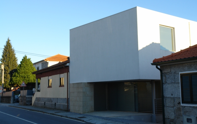 O corpo da farmácia posiciona-se junto à rua, vertente norte, e a habitação volta-se para a parte posterior do terreno, tirando partido da vertente sul e das vistas excepcionais sobre os montes de Fafe.