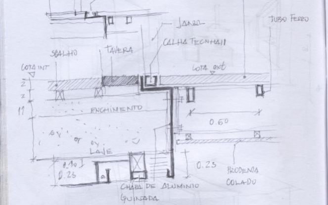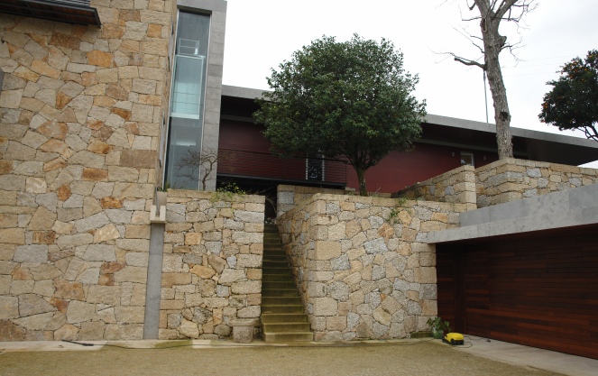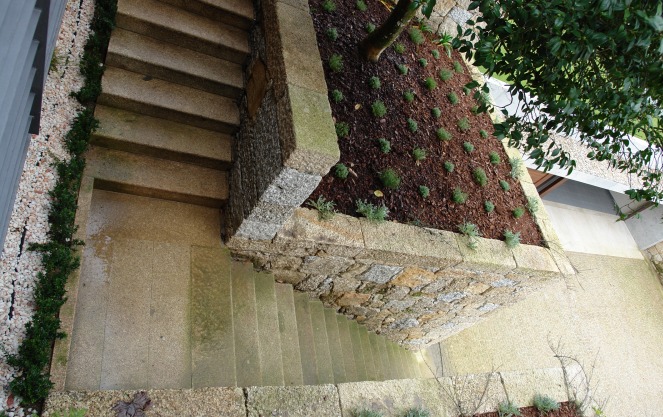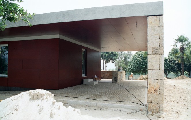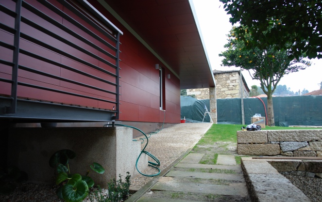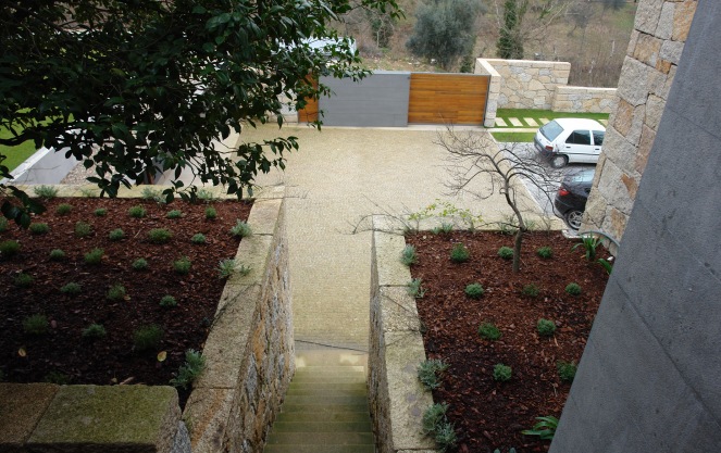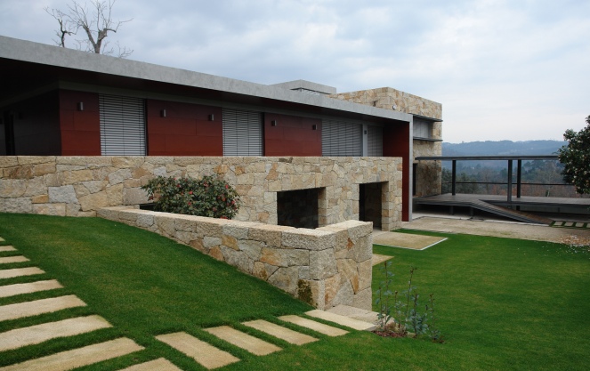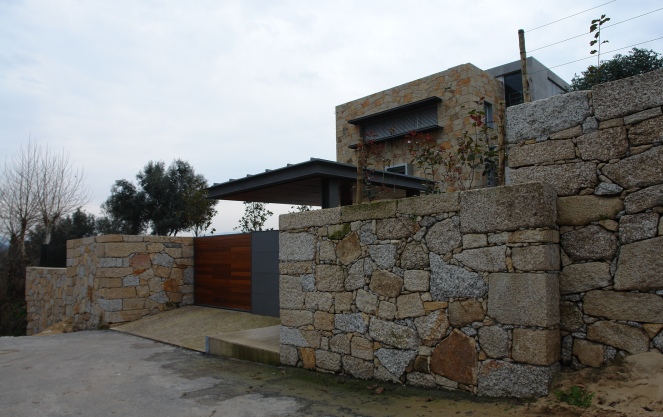 No projecto desenvolvido, como não era possível recuperar a casa existente dado o seu avançado estado de degradação, optou-se por recuperar a relação morfológica existente entre a primeira habitação e o terreno envolvente.