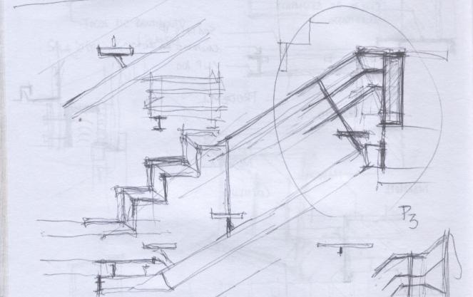 Na união entre os dois corpos foi proposto um elevador de modo a permitir um acesso a todos os pisos habitáveis por cadeira de rodas. Este elemento, de características verticais, por percorrer neste sentido todos os espaços propostos foi também definido para funcionar como entrada de luz no interior da habitação.