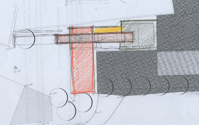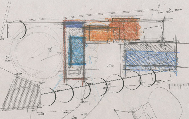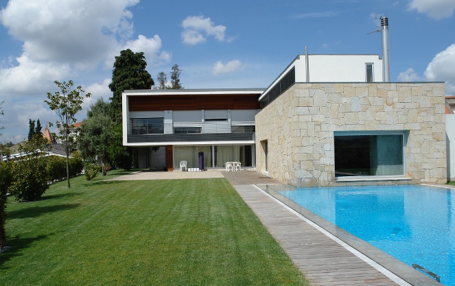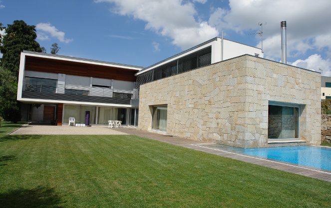 A casa coloca-se no terreno de forma a dividi-lo em duas zonas – exterior urbano e interior privado. Para o efeito são definidos dois eixos em forma de L; um paralelo ao à entrada e outro perpendicular ao anterior.