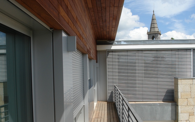 Apesar da difícil configuração e das complexas confrontações existentes junto aos limites da parcela, procurou-se enquadrar através da colocação e dimensionamento dos envidraçados os enquadramentos visuais mais significativos – zona de montanha a nascente, torre da igreja a norte e casa classificada do período brasileiro a sul.