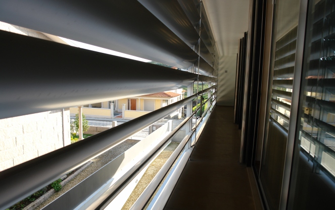 A iluminação interior e a privacidade da habitação estão da origem quer do recurso a diversos elementos de sombreamento tais como brisas solares, quer da definição de muros de granito de separação entre interior e exterior.