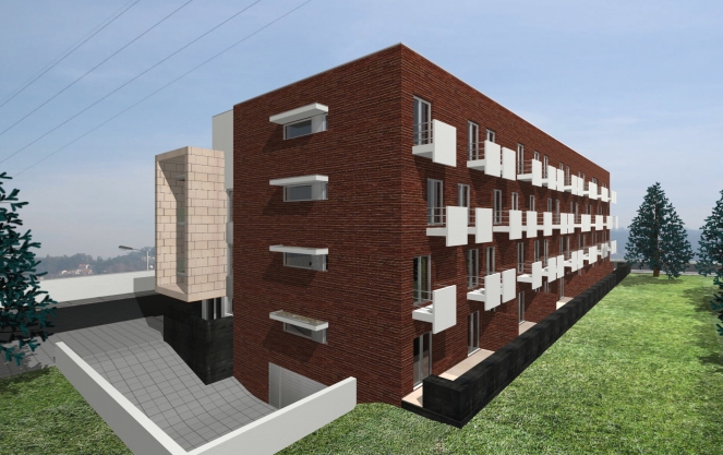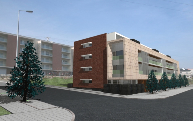 O edifício desenvolve-se dramatizando a diferença existente entre as áreas privadas dos quartos e as áreas sociais das salas e cozinhas. Esta fractura vai caracterizar distintos volumes que definem a morfologia do projecto, bem como opções construtivas distintas, bem como definir os espaços interiores das habitações.