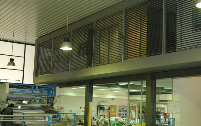 O edifício desenvolve-se em três níveis. No nível de entrada, para além dos acessos, situam-se as áreas de produção; na cave a área de armazenagem que surge como prolongamento do piso de entrada através de uma rampa que percorre todo o cumprimento da construção. A zona administrativa está situada num volume localizado a uma cota superior, de modo a libertar todo o piso térreo para as actividades de produção. Este corpo, que se desenvolve-se no interior do pavilhão industrial, afasta-se dos seus limites para que num dos seus lados, através de uma clarabóia situada sobre a rampa, seja possível introduzir em todos os gabinetes iluminação e ventilação naturais..